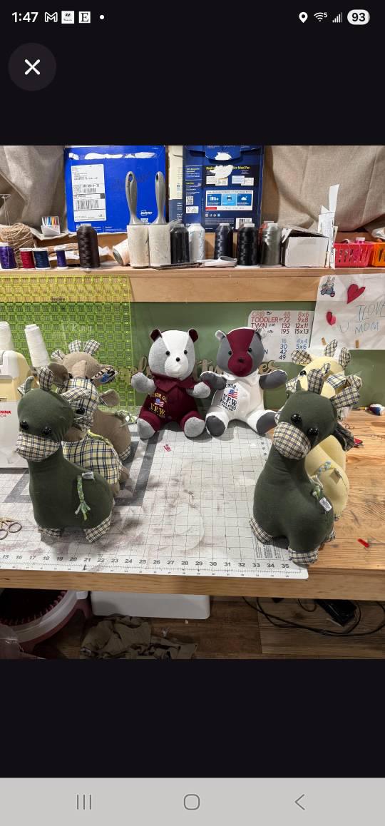 I have also made items from a loved ones shirts who may have passed away or army fatigues for a child who’s parents serve! Made with safety eyes polly fill insides and yarn tail!