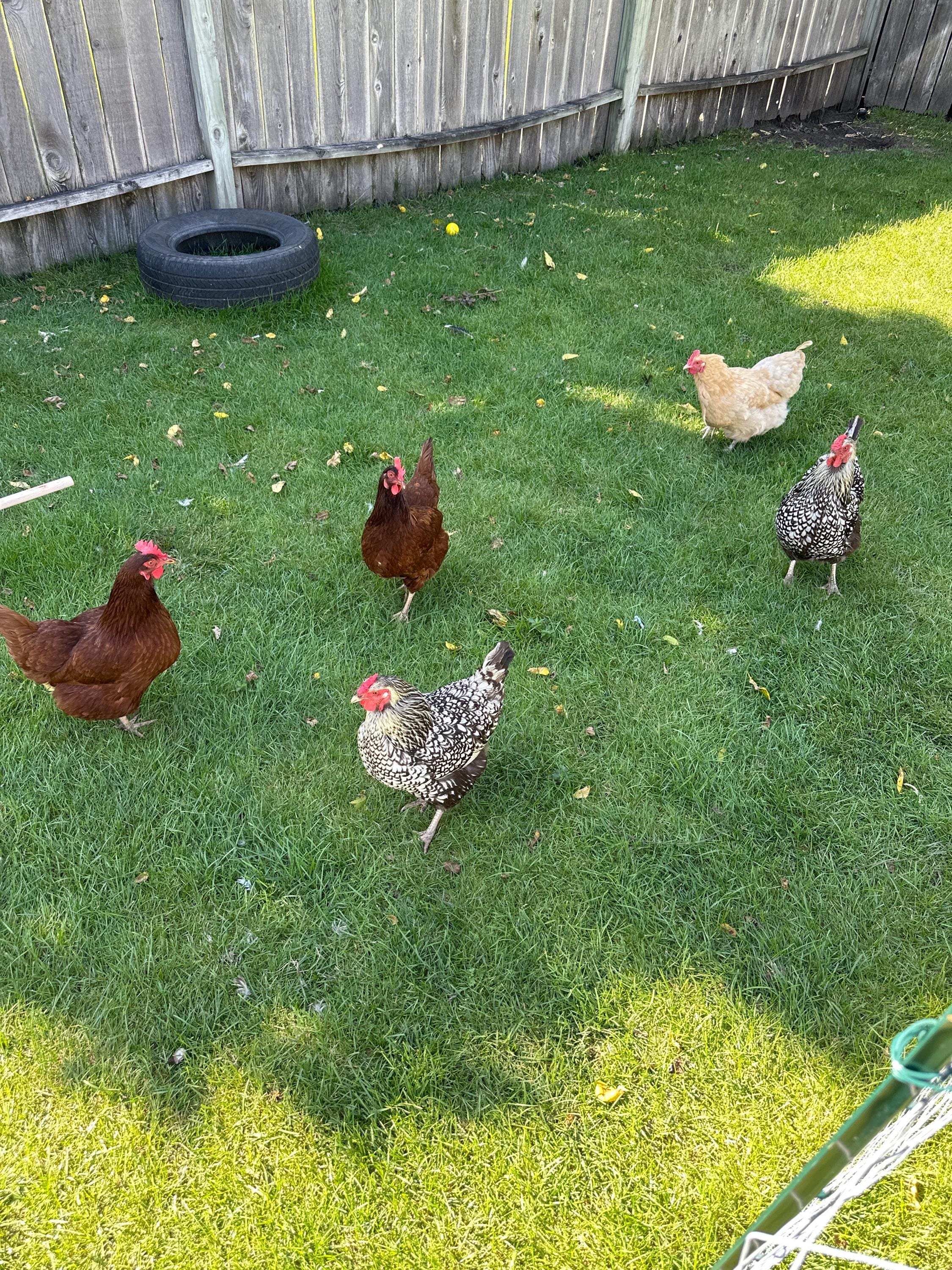 We have 8 chickens and 3 ducks and let me tell you they are SPOILED, they get to free range in our backyard and enjoy sunbathing as well as love from our kids.