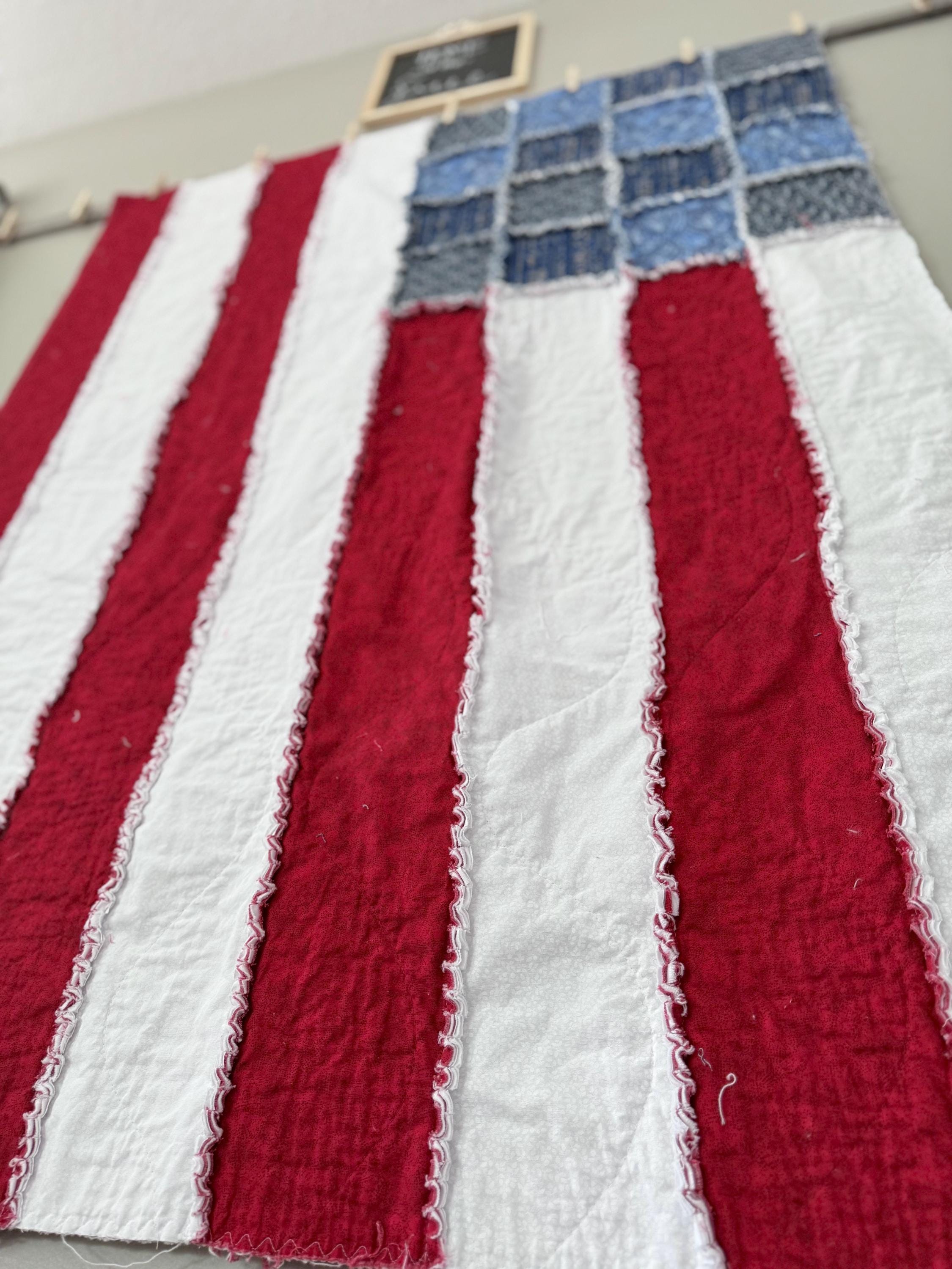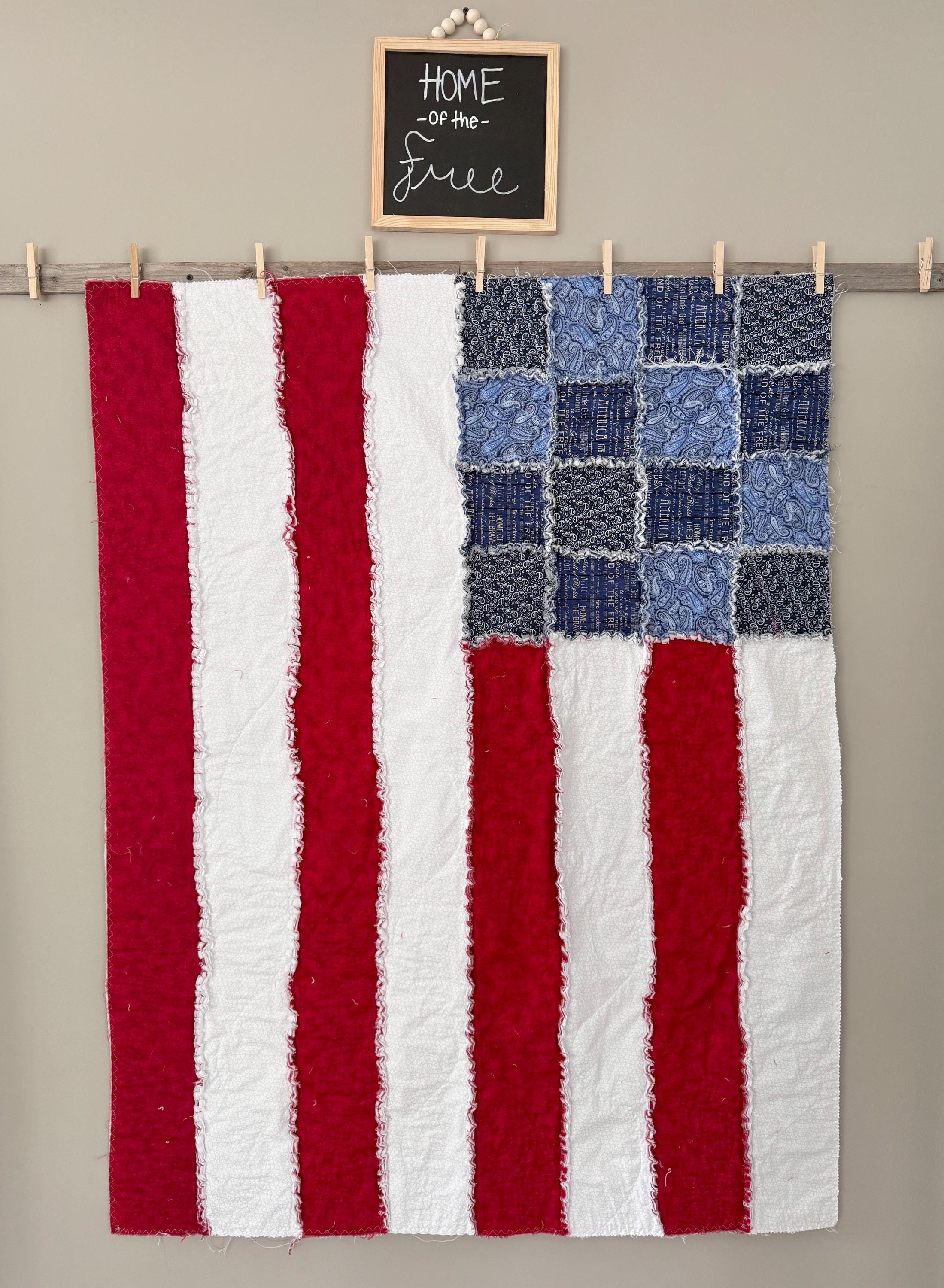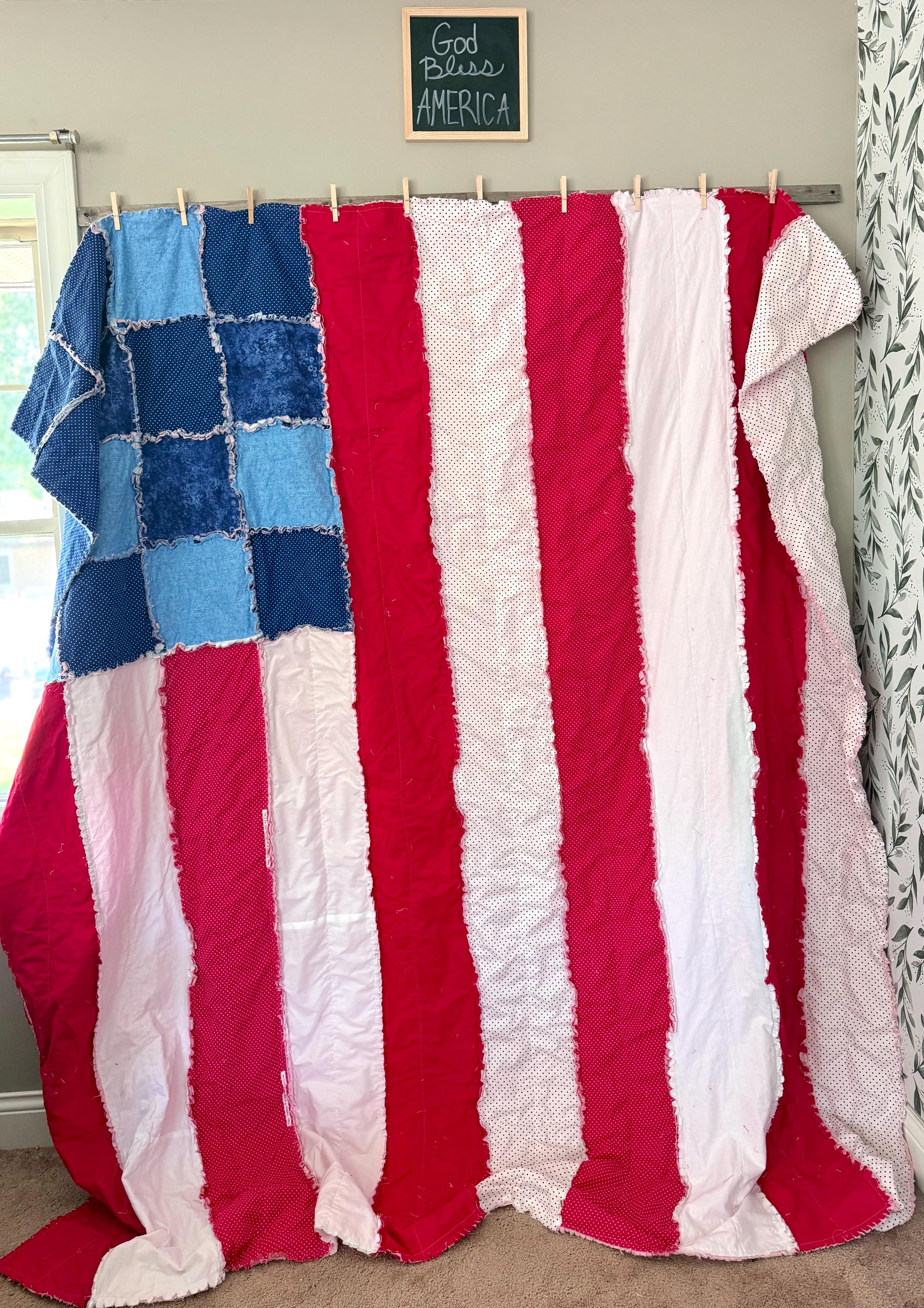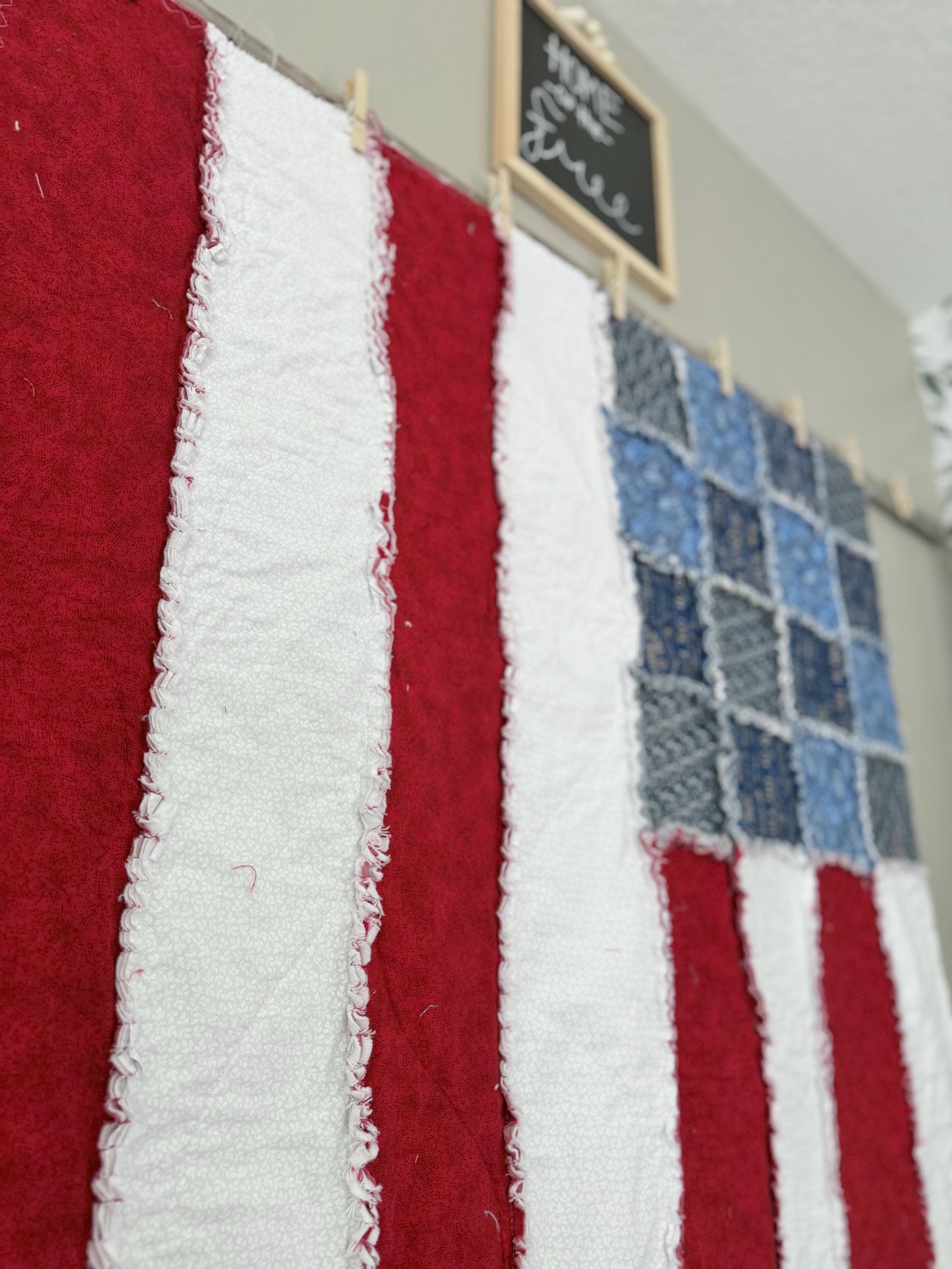 This listing is a custom American flag rag quilt made to the size that you request!