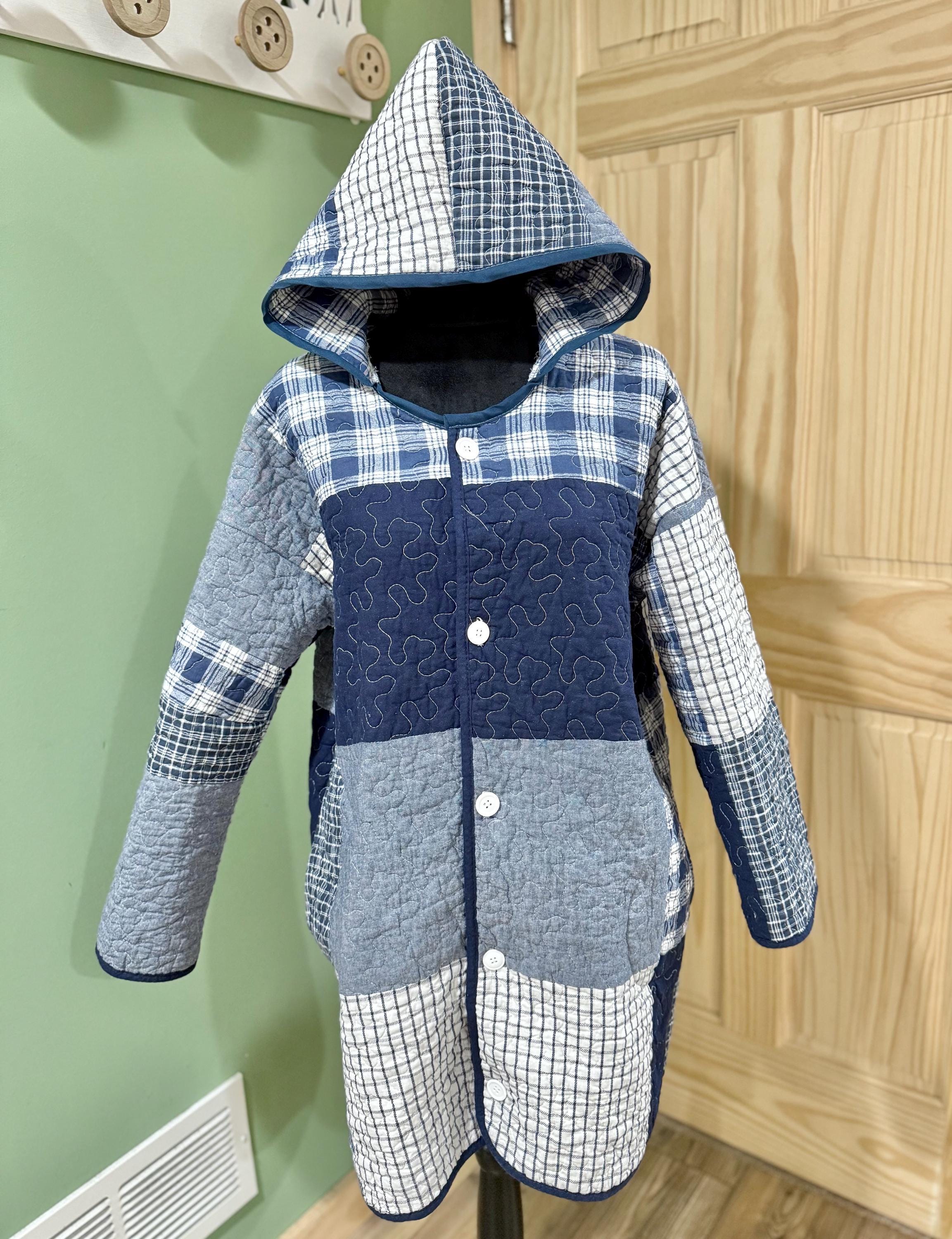 I get a quilt in the color you select and cut out pieces to sew together your jacket.