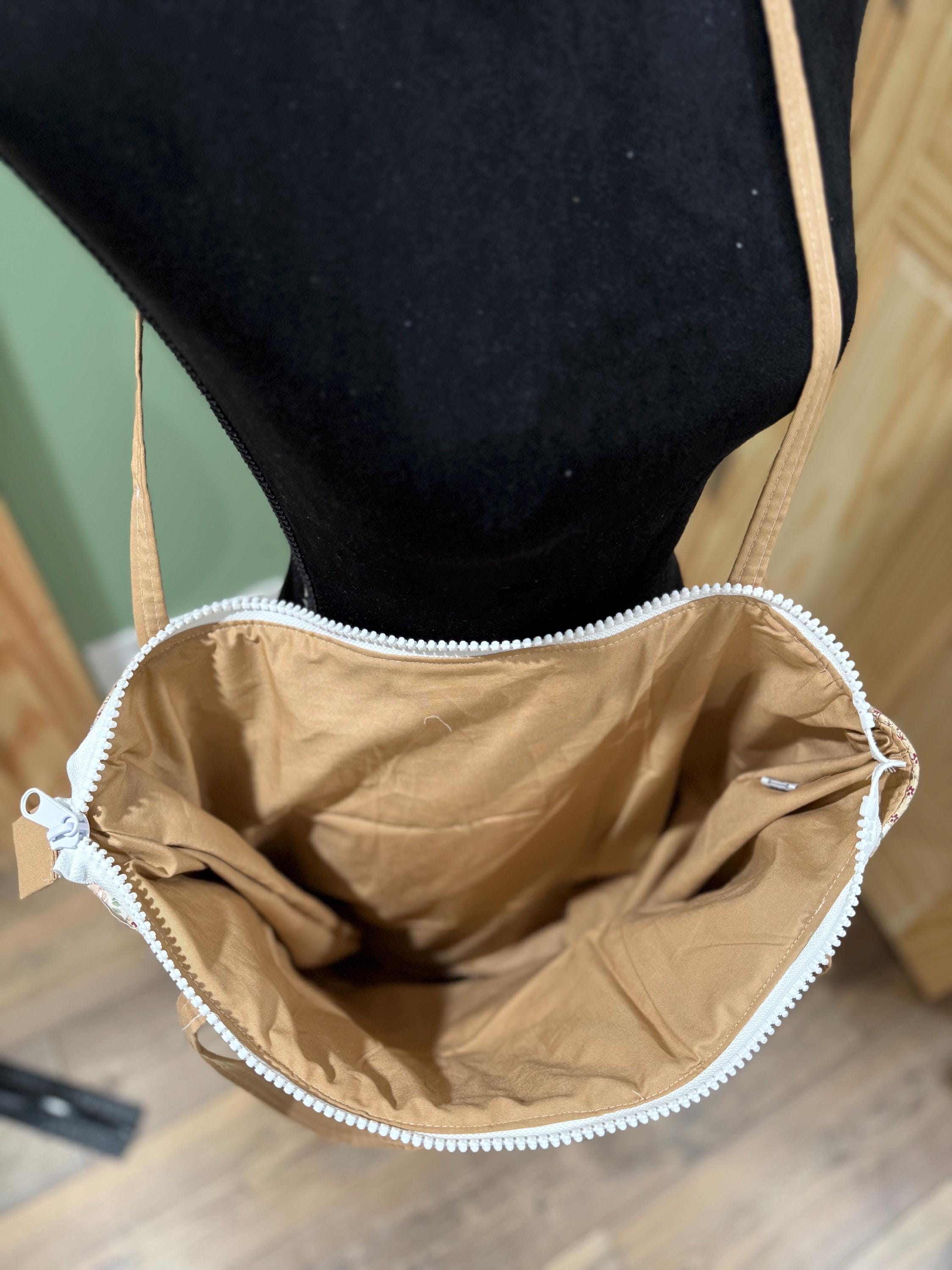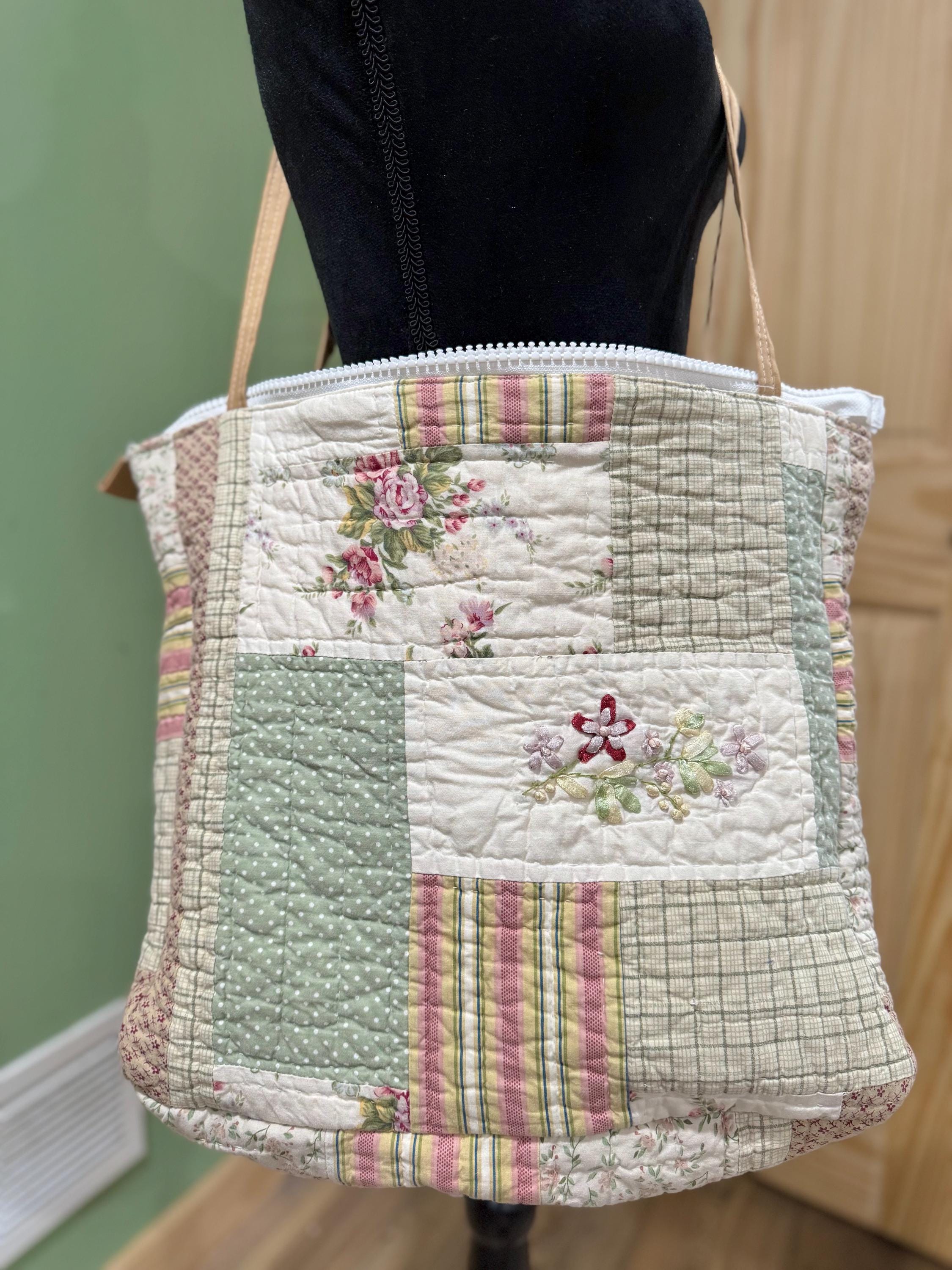 Vintage quilt made into tote bag. I sourced a hand sewn quilt and made a over the shoulder tote bag.