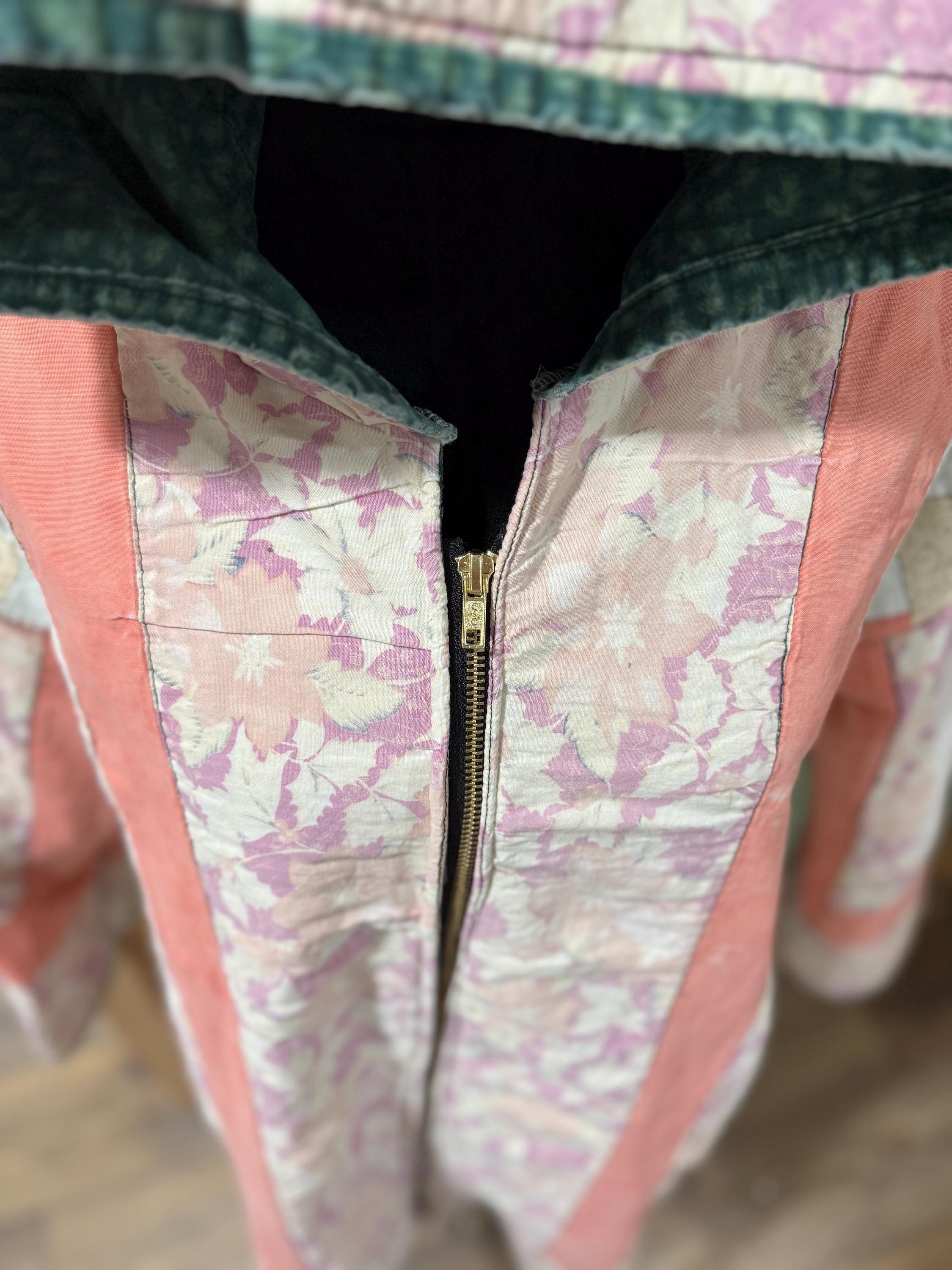 Refurbished vintage quilt made into a coat.