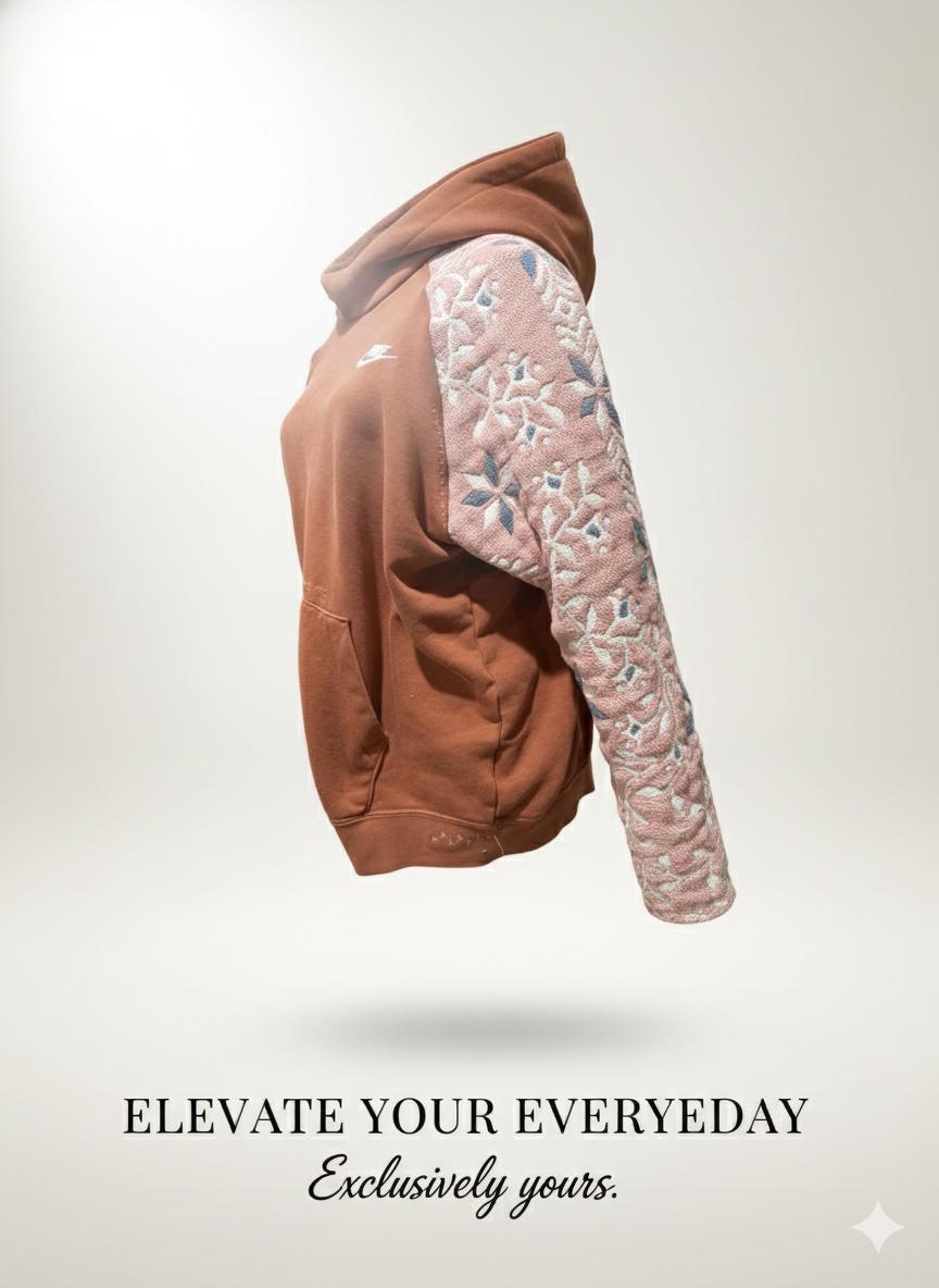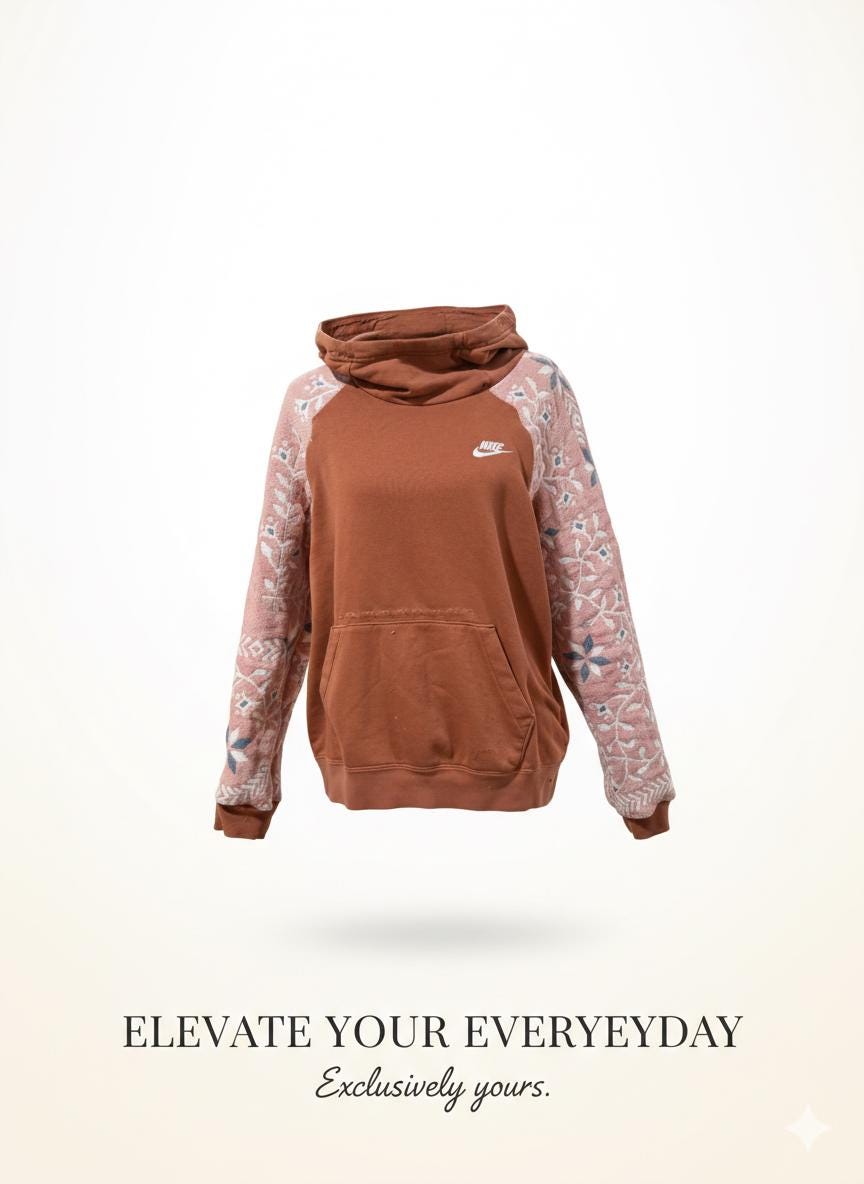 This is a Nike hoodie size large and the blanket was a woven print with floral scrolling design