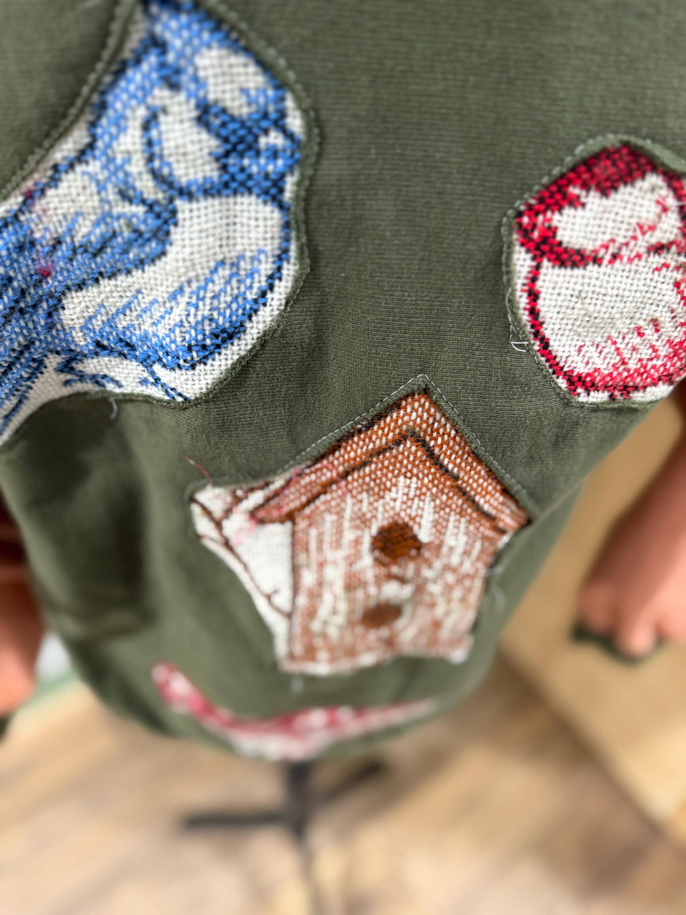 This is an original one of a kind piece. I source old clothing and blankets and give it new life.