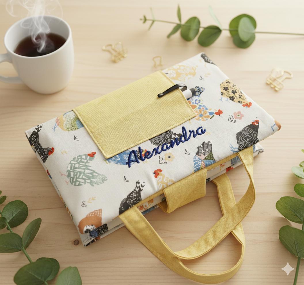 This is a Bible (or book) cover made from cotton fabric and you get to customize your selections