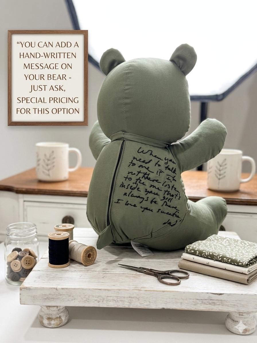 This is a listing for custom made to order memory bear! VOICEBOXES NOT INCLUDED IN ZIPPER BEAR PURCHASES!! These bears come in 2 different sizes so please see below for more information on sizes