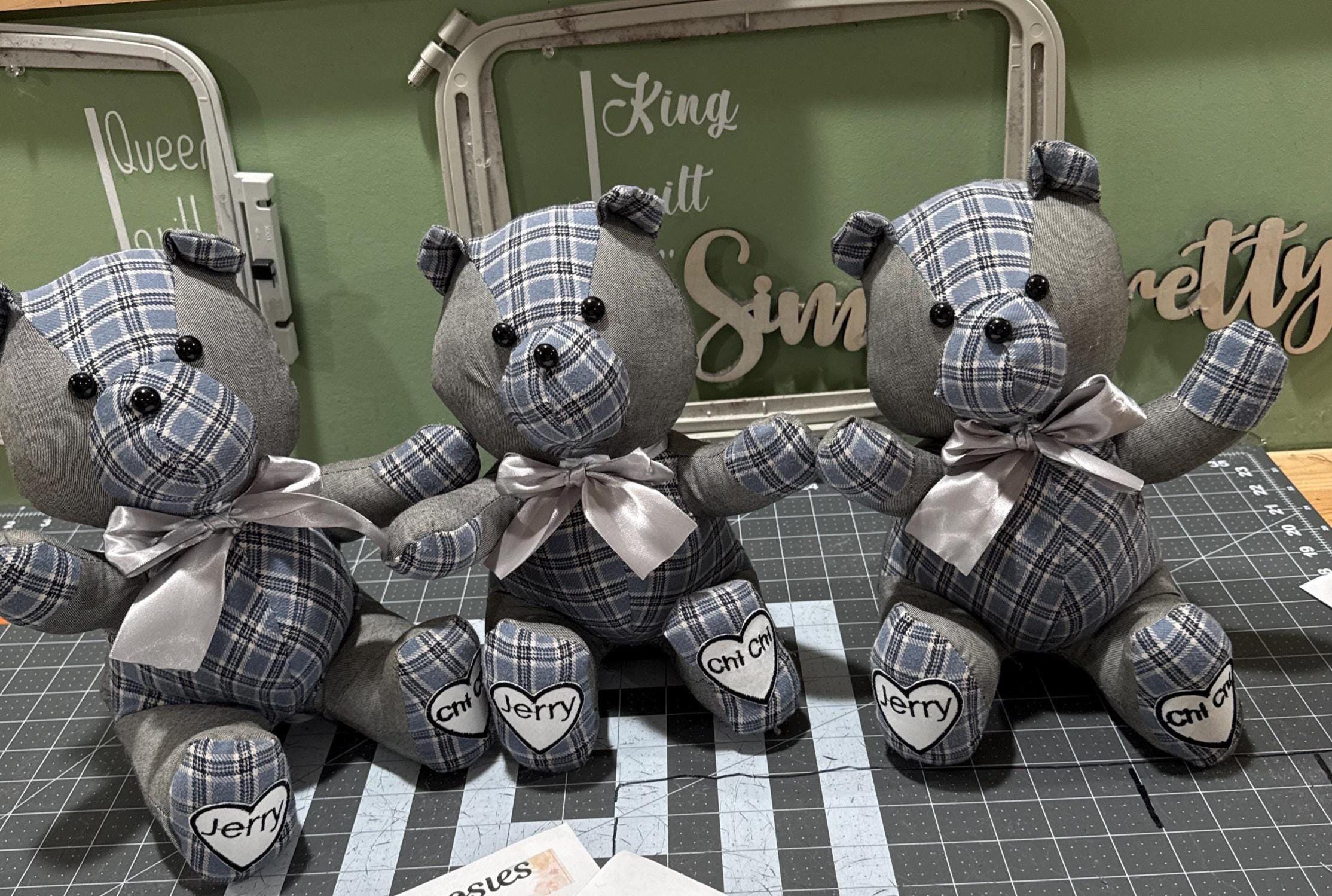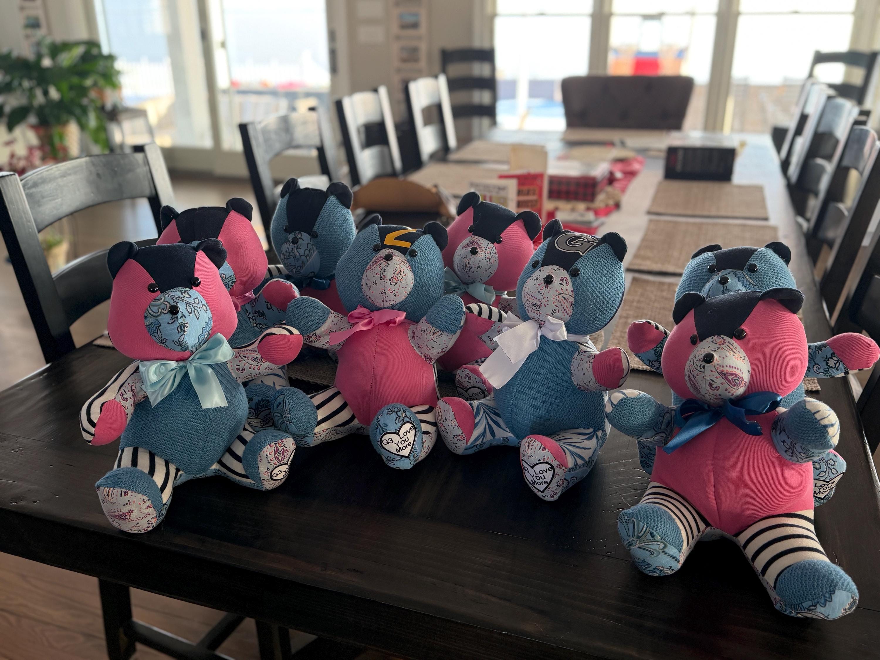 I had a total of 8 bears made from my mother in laws clothes for grandkids and aids…. They are adorable!