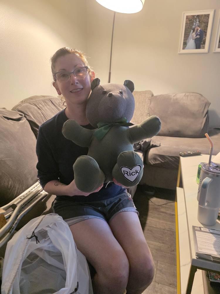 This was everything I had hoped! She was very accommodating and the bear is absolutely perfect way to be a sweet memory of my dad! I had been so scared to send off his clothes and it came out better than I could have imagined.