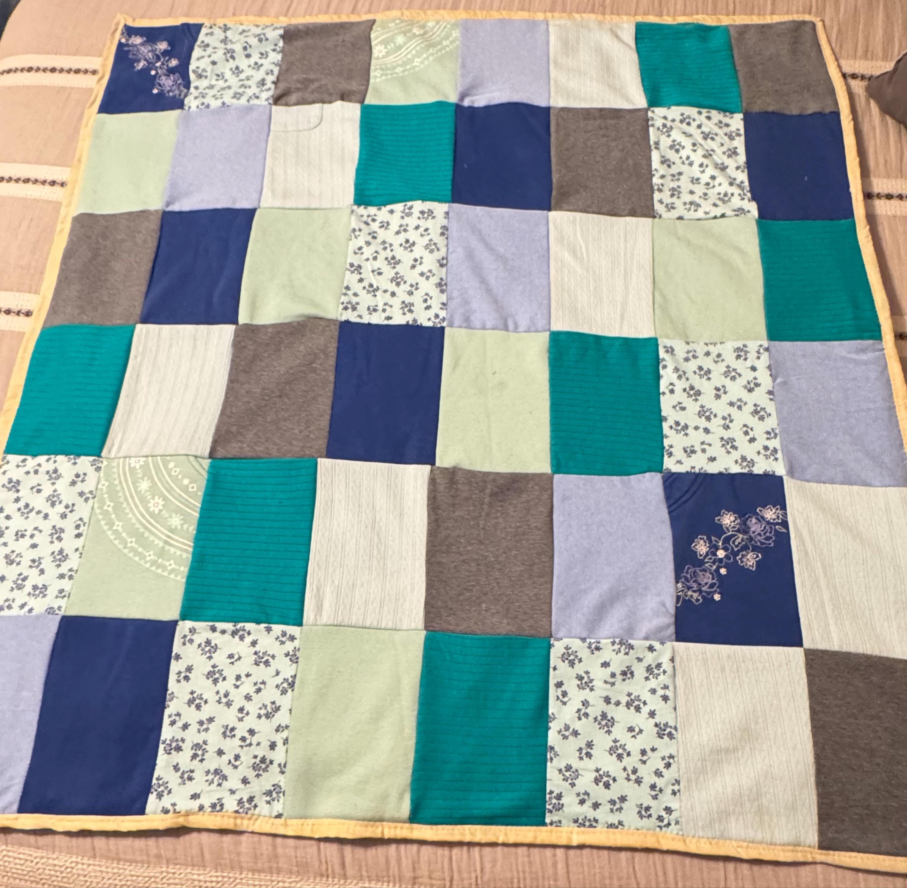❤️❤️❤️totally understand if all you have is one item that remains of your loved ones things and that’s ok too!!! I can use your one item and add filler fabric that matches to create the size you choose-please note however filler fabric is $2 extra per square. You can always find fabric of your choosing and send it with your item if you would rather just make sure you message me before hand about possible fabric types and how much you’ll need❤️❤️❤️